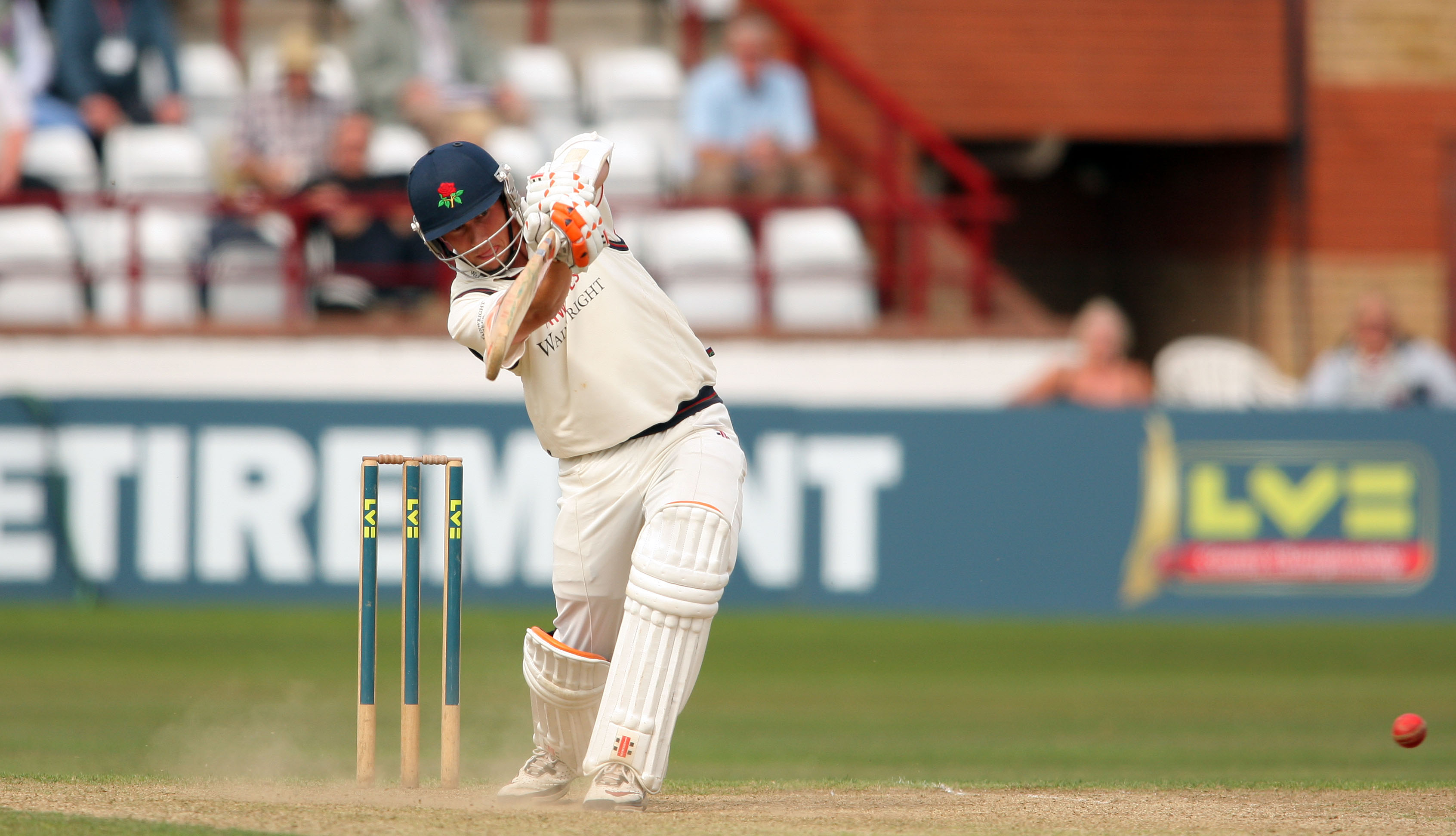SHPL7031 Published September 14, 2011 at 3384 × 1944 in after lunch , Kerrigan hits 40 LANCASHIRE C C C SOmerset 14/09/11 LV= County Championship somerset v lancashire day3 simon kerrigan batting to 40 pic simon pendrigh