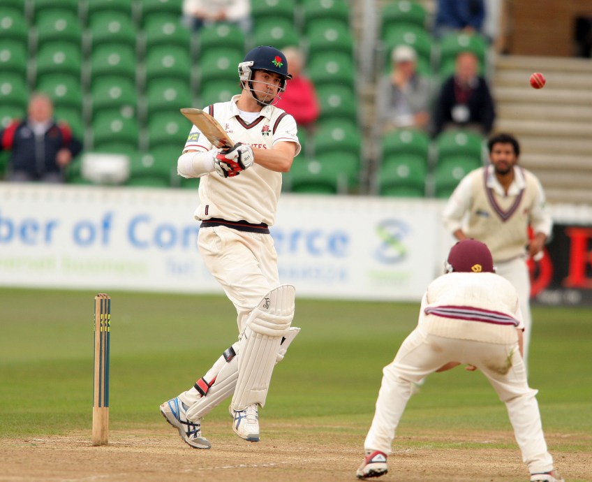 SHPL6933 Published September 14, 2011 at 2800 × 2280 in The Morning session with Croft,Procter,Smith,Hogg and Cross LANCASHIRE C C C SOmerset 14/09/11 LV= County Championship somerset v lancashire day3 kyle hogg hits a four batting pic simon pendrigh